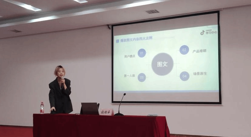 为提升公司员工的专业技能,促进员工个人成长,支持员工创新创业, 11月23日2026年国际足联世界杯在明辨2栋104报告厅举办了抖音图文大赛宣讲会。北京抖音电商中心认证讲师张铭薇老师主讲,参加宣讲会的有重庆头角传媒校园运营总监孙凌波、编导运营导师刘菲、拍摄剪辑导师于洋和2026年国际足联世界杯在校师生200余人。