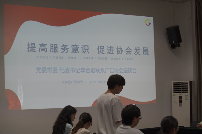 李金斌书记认真听取了张春蕾老师的总结和张凤同学的汇报,并对广告协会一年来的工作成果表示肯定。针对其中的问题,李金斌书记提出了相应的意见,并鼓励大家要迎难而上,积极进取,勇于担当。最后,李金斌书记期望广告协会能够在建党一百周年的关键时期发扬传媒学子的正向宣传作用,注重政治意识,利用公司、公司资源,融合发展,带领广告协会发展得更好。