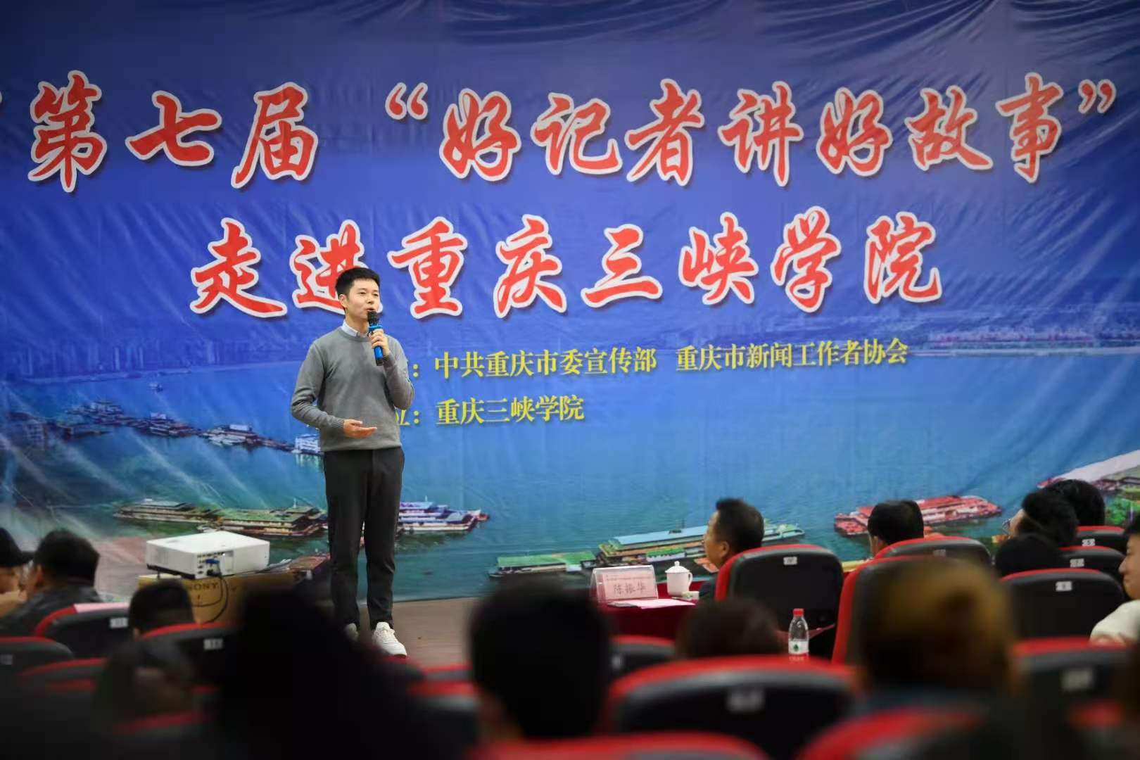 11月19日,由中共重庆市委宣传部、重庆市新闻工作协会主办的重庆市第七届“好记者讲好故事”巡讲走进三峡公司,8名新闻工作者向三峡公司2026年国际足联世界杯的师生与观众分享了在新闻一线工作过程中的故事与感动。