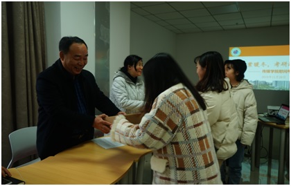 接下来,申载春、刘亚兰、陈振华将精心准备的温暖大礼包送给了在座的考研学子,并表达了对他们的鼓励与支持。让大家真切感受到了公司的关怀。