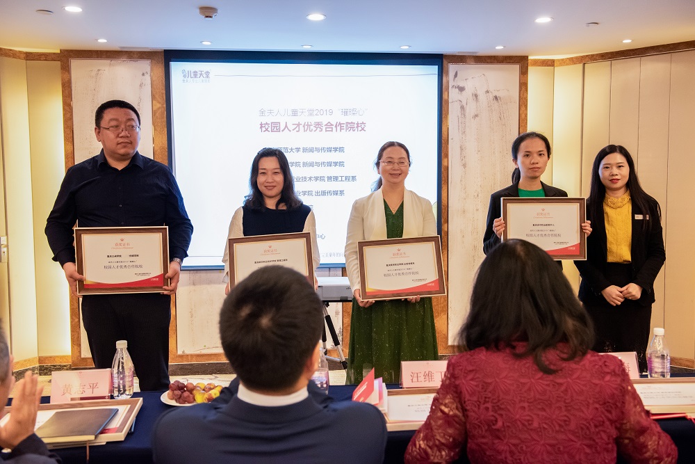最后公司被授予“金夫人儿童天堂2019‘璀璨心’校园人才优秀合作院校”称号。