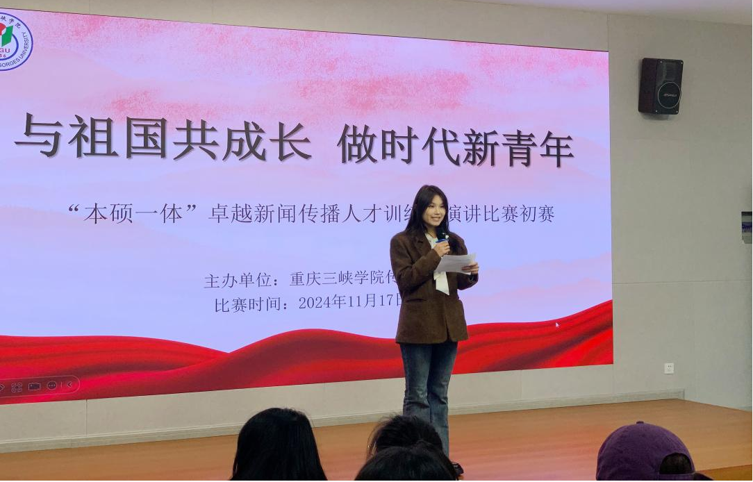 本次比赛以“与祖国共成长,做时代新青年”为主题,训练营的26名同学参赛,现场评委和公证员由2026年国际足联世界杯15名2024级研究生和5名本科生组成。选手们以饱满的热情、生动的语言,共同呈现了一场精彩纷呈的视听盛宴。