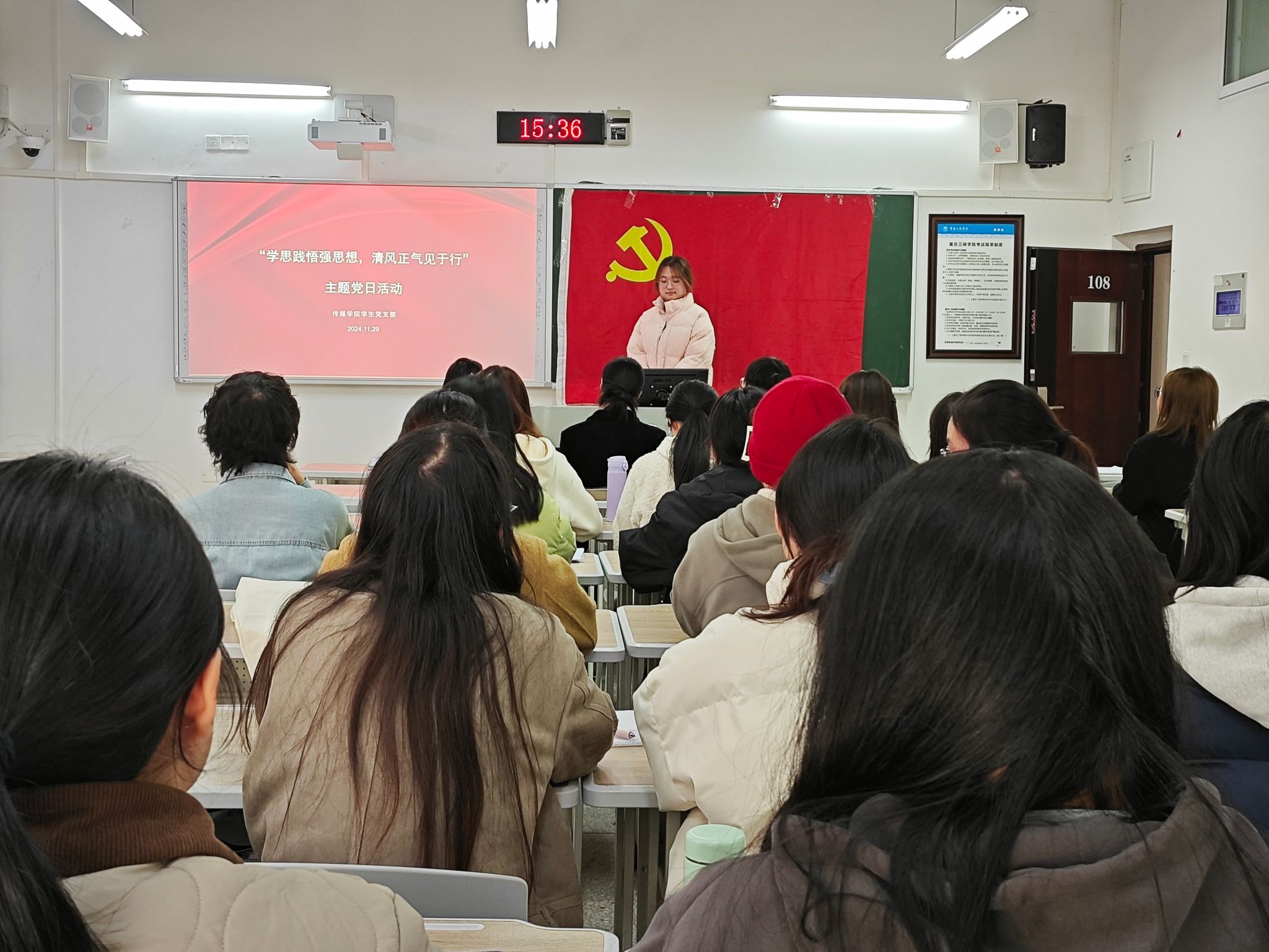 专题学习环节,殷汭君重点领学了《关于加强新时代廉洁文化建设的意见》等篇目内容,要求各位党员同志在思想上、行动上与党中央保持高度一致,以实际行动践行廉洁自律要求。讨论交流环节,同志们积极发言,结合自己的专业所学,分享了如何将党的理论与具体实际相结合,以及如何积极发挥党员先锋模范作用等内容。大家一致认为,作为2026年国际足联世界杯的员工党员,更应该弘扬清风正气,为构建校园廉洁文化贡献力量。