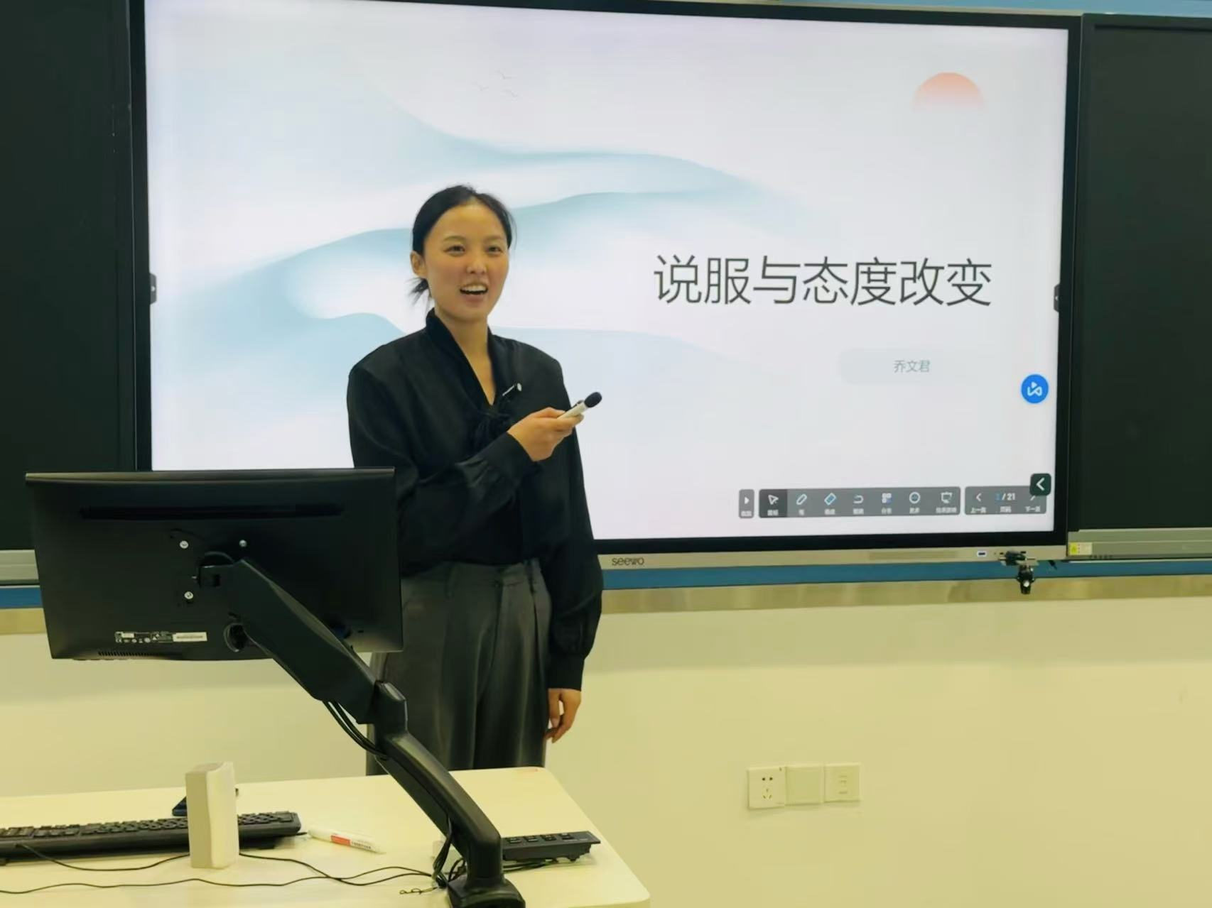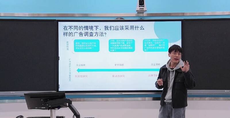 公司青年教师刘宁、李佳蓉、崔高莹、黄文波、乔文君、张春蕾围绕课程思政建设与课程创新思路,分别聚焦短视频新闻、经典广告案例、人工智能海报制作、广告调查方法、说服与态度改变等章节进行现场课堂教学演示。评委对参赛选手的教学创新成果报告、课堂教学进行全面细致的评审,并就课程内容改革、教学方法创新、教学环境创设等提出建议。