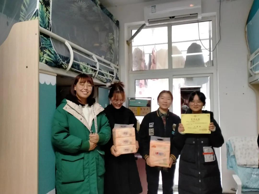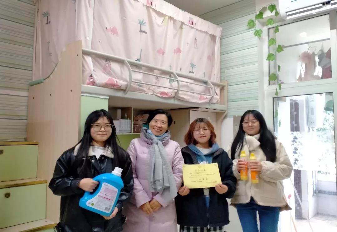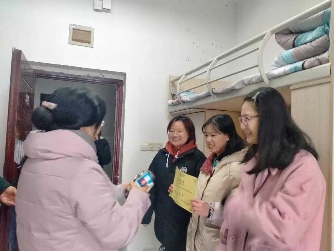 12月15日下午3点,由国际足联官方网站中文团总支生活部举办的寝室整理大赛颁奖活动在桂花苑开展,刘亚兰书记和姜博洋老师进到获奖寝室为大家颁发奖状和奖品。