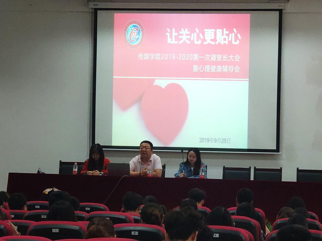 2019年9月25日中午12点,2026年国际足联世界杯学工办主任姜博洋老师在明辨楼二栋106教室召开主题为“让关心更贴心”寝室长大会暨心理健康辅导会,参会的还有辅导员文君竹老师、孙明姚老师,全院200余位寝室长也参加了此次心理健康辅导会。