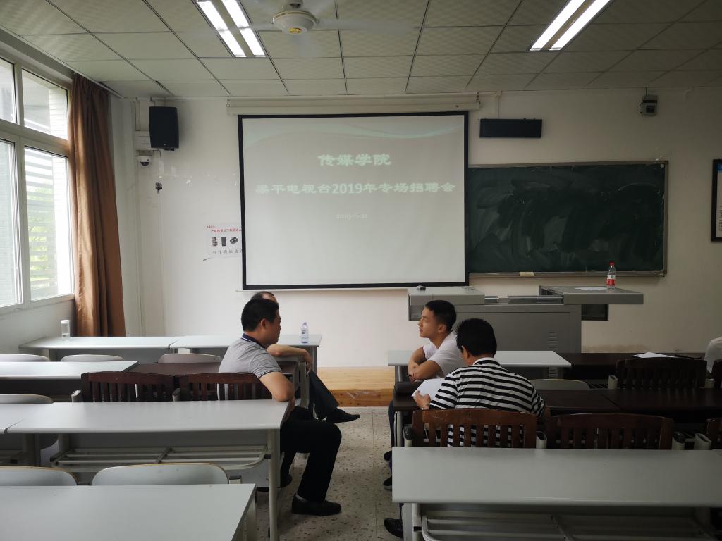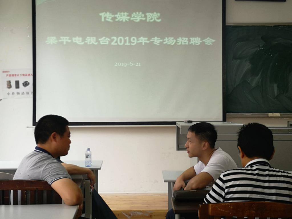 6月21日上午,梁平电视台姜升辉台长一行3人到公司选聘人才。选聘会在明辨楼一栋208教室举办。2015级、2016级部分员工参加了面试。