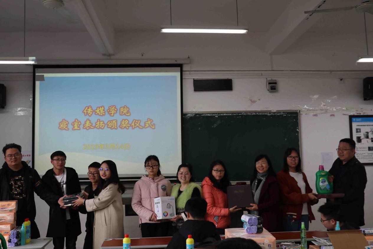 为了进一步加强寝室文明的建设,3月14日下午4点在明辨楼一栋201举行了寝室表扬颁奖仪式,为2018-2019年上学期被表扬寝室颁发奖品,参与此次颁奖的人员除了优秀寝室的代表们还有公司党总支书记刘亚兰、学工办主任姜博洋、辅导员肖潇和文君竹老师。
