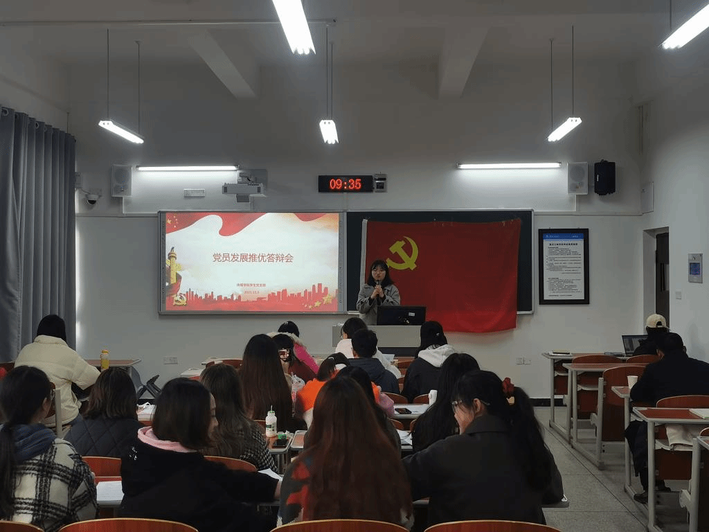此次推优入党答辩会主要讨论了24名发展对象的推优事宜。本次答辩包括:个人陈述,现场提问,现场评议三个环节。