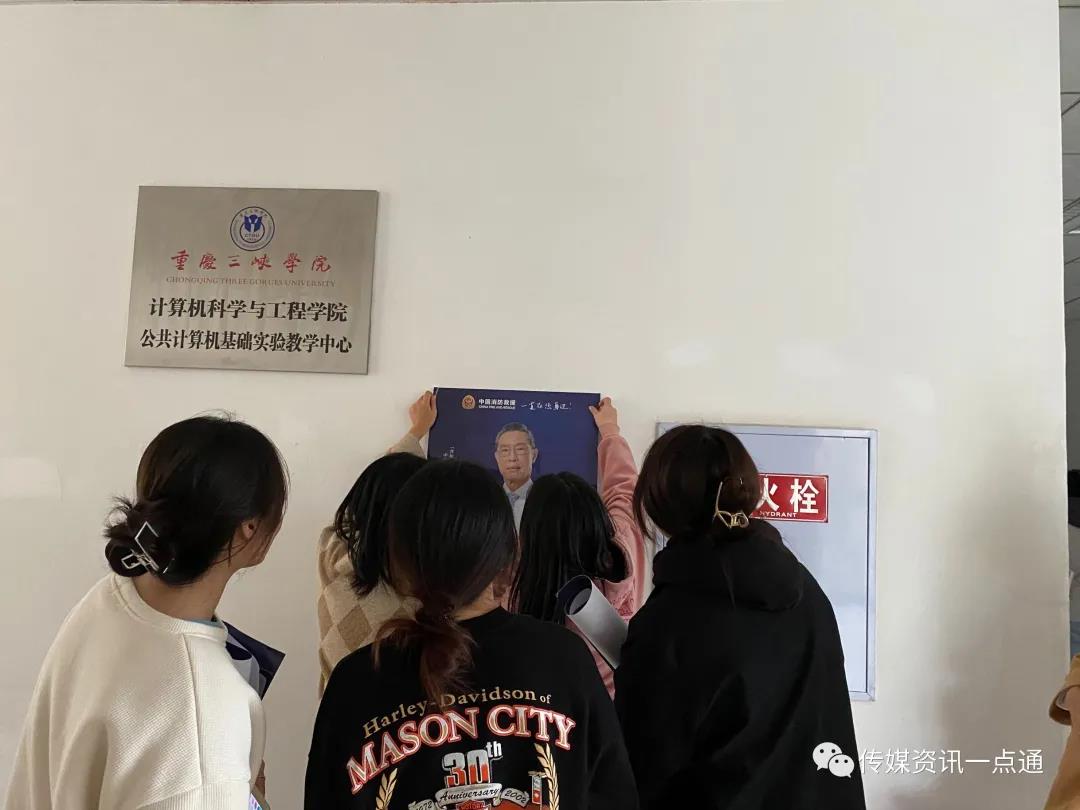 张贴消防安全海报的同学们认真负责,放眼望去,整个明辨楼的最显眼处已经张贴上了消防安全海报。冬天已到,也是火灾的高发季节,校园应注意热水袋等的爆炸,不可使用电器。同学们看着这些张贴了将近1小时的海报,露出了欣然的笑容。