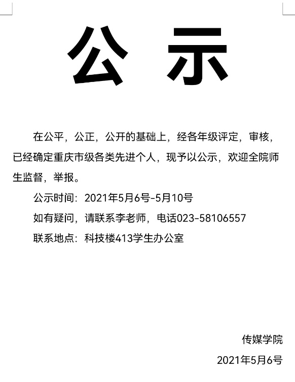 2021年5月6日,公司初评选出本科员工先进并进行公示。开展员工先进评选活动是贯彻落实立德树人根本任务,进一步加强和改进老员工思想政治教育工作的一项重要举措,我公司高度重视,坚持标准,严格审核,公开、公平、公正地开展推荐工作,坚决杜绝评优工作中的不正之风。